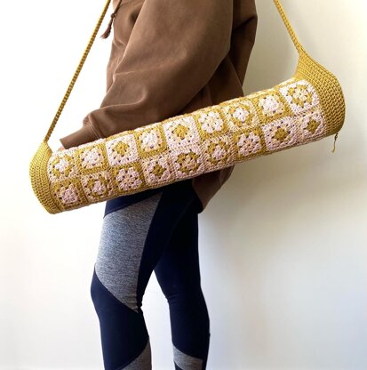 Love making granny squares but don't know what to do with them? Make this very useful yoga mat bag to take to your yoga, Pilates or any exercise classes! This ten page pattern has many photos and step by step detail showing you how to make this stylish bag.