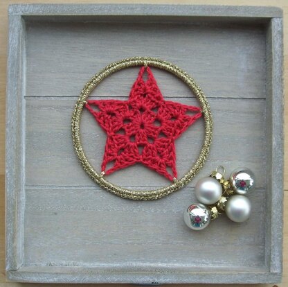 This is a crochet pattern for a granny star and explains how to crochet your star into a 4 inch / 10 cm metal ring.