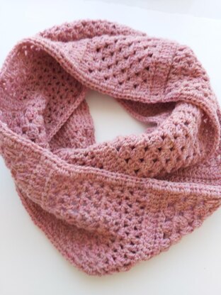 A very simple and quick to make infinity scarf using granny stripe and V stitches.