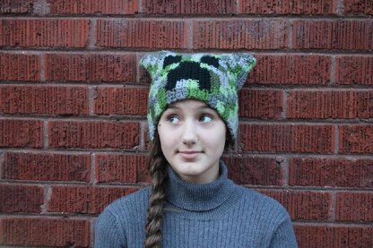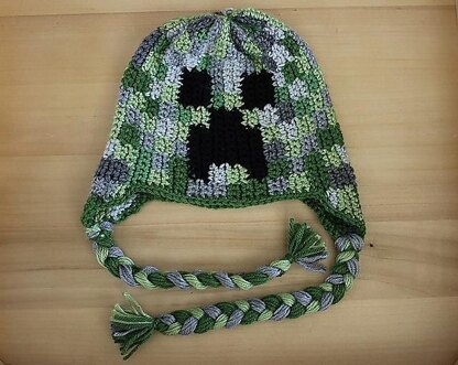 Just a simple sack style or rounded beanie inspired by the creeper character from minecraft