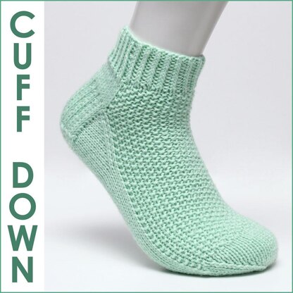 This is a cuff down sock pattern, worked in one piece, from the cuff down to the toe. Casting on requires using a stretchy cast on method. The cuff of the sock is knitted first, before moving onto the leg, the heel, the gusset, then the foot and finally finishing on the toe. Kitchener stitch is used to close the stitches at the toe.
