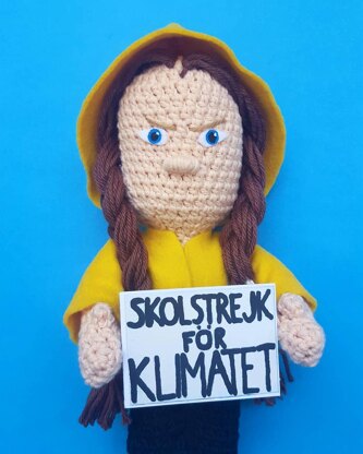 This is a pattern to crochet your very own Greta Thunberg Doll!