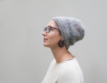 Grey Matters is a smart beanie featuring a cute slanted stripe. Working this hat requires short rows and a bit of Fair Isle knitting, which makes it a perfect piece to expand your knitting skills if you haven’t tried these two techniques before. The clear and simple instructions in this pattern will help you along! Grey Matters is knit in the rustic and characterful Blacker Gotland DK, using one main colour and two contrast colours for the Fair Isle accent.
