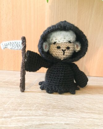 Crochet this Grim Reaper Sheep aka Grim Sheeper Doll, a simple and fun pattern to make. Pattern includes written instructions and reference photos.