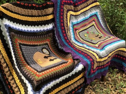Grimm's Tales blanket is based on themes found within Grimm's Fairy Tales. This blanket touches on Garden walls with secret doors, Mirrors on the wall, Poison apples, Dark forests, Birds that give messages, Golden bobbins, Baskets for bread, and Hearts in treasure boxes. You can tell your own fairy tale stories as you make your blanket!