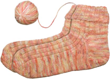 These simple socks are perfect for your first pair of turned heel socks! These simple socks look great knitted in hand-dyed yarn or in any standard sock yarn. The straightforward knit 3 purl 1 rib stitch pattern gives great shape and a comfortable fit.