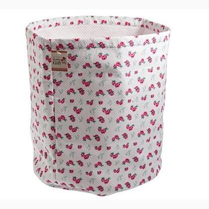 This pink and white storage bucket is a pretty addition to the craft room. It's perfect for storing yarn, fabric, spools of trimmings or ribbons. Made from 100% cotton with PVC coating it is lightweight and portable. Wipe clean. Complements TK20\\118 - yarn bag. (d/w/h): 31 x 38 x 31cm.