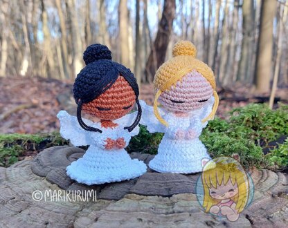 This Guardian Angel measures about 3.5 inches / (9,5 cm. when made in fingering yarn, but can be made from any weight yarn and appropriate hook for different sizes.