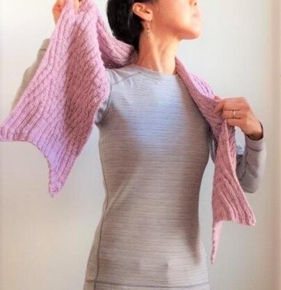 ***Hacchi ***is a reversible scarf with 2x2 ribs that form diamond and chevron shapes.