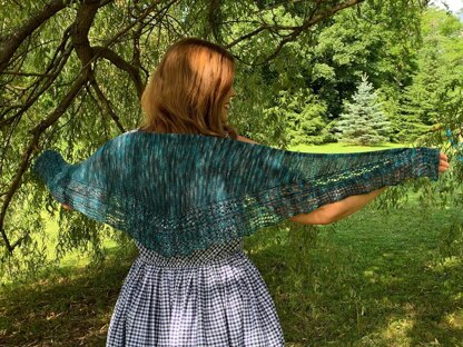 Gauge: 18 stitches/ 28 rows per 4 inches in wet-blocked stockinette. Gauge is not critical for this item, but it will affect drape and amount of yarn used.