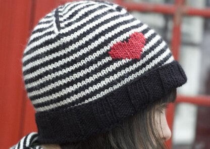 (Oh I know it’s a tired cliché, but it’s just so fun to say!) Slipped-stitch decreases liven up this easy hat, and a duplicate stitched heart adds a touch of sweetness (but just a touch.)