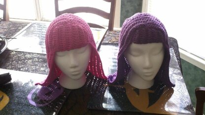 Show your wild side with this hat. You can make it in neon colors to make a statement, or go with something more tame. The hat on the top was made with Homespun yarn. The hats on the bottom were made with Peaches and Cream Yarn. Better yet, use Peaches and Cream Scented Yarn. What a great way to finish off a Halloween Costume, or use it as your only costume for work. This pattern is written in US terms.
