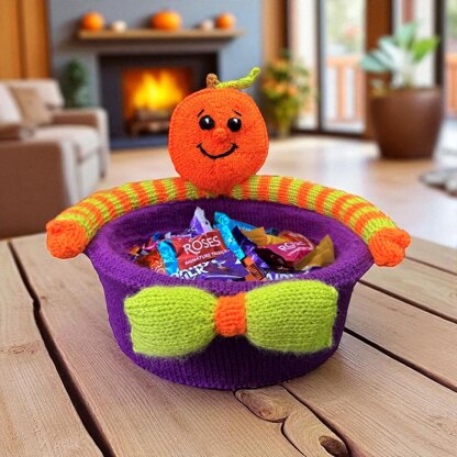 This gorgeous Halloween Pumpkin Knitting Pattern is made to cover around a tub of sweets. It can be used with 600g tubs of Roses, Heroes and 650g Quality Street.