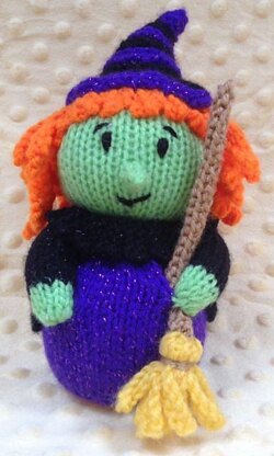 This spooky witch holding a broom knitting pattern can be used as a chocolate orange cover or stuffed using the base pattern to make a lovely 20 cms soft toy.