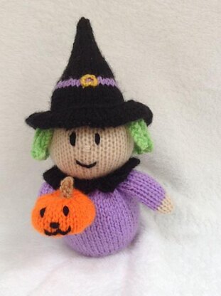 This spooky witch holding a Halloween pumpkin knitting pattern can be used as a chocolate orange cover or stuffed using the base pattern to make a lovely 20 cms soft toy.