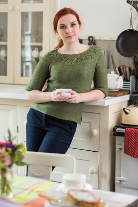 A pullover with a gorgeous yoke, split hems and cropped sleeves. The pattern includes instructions to tailor the garment for different cup sizes.