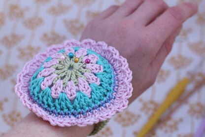 This pincushion sits snuggly on your wrist and will always be in easy reach!