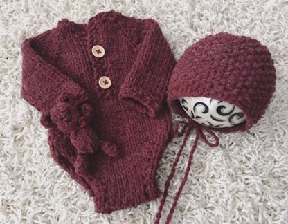 Fits both newborn and 21-22 inch reborn size Romper, bonnet and bear SET- Pattern THIS IS NOT THE FINISHED ITEM