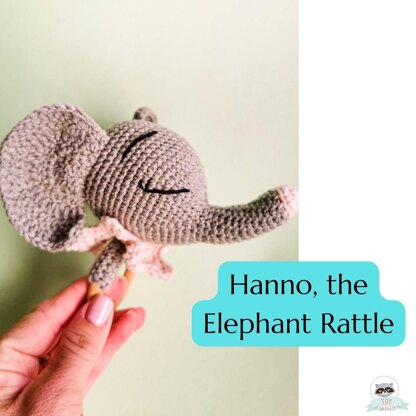 Crochet Amigurumi pattern for a sweet elephant rattle.