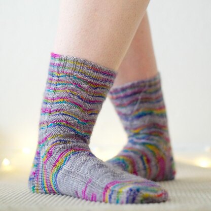 From the first footstep to the last entrechat, Happy Dance will show off your special yarns through its catchy pattern. With its customized ribbing, toes and flap, you will be the star of the show !