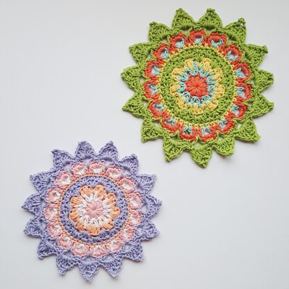 I enjoy crocheting mandalas as it relaxes me. This one is also making me happy as it's colourful and grows very quickly.