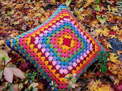 This PDF tutorial (36 pages) provides detailed written instructions on how to crochet a granny cushion based on a traditional granny square design with one large granny square motif front piece , sewn on a good quality fabric cushion cover, fastened with a zipper which makes it easier to remove and wash.