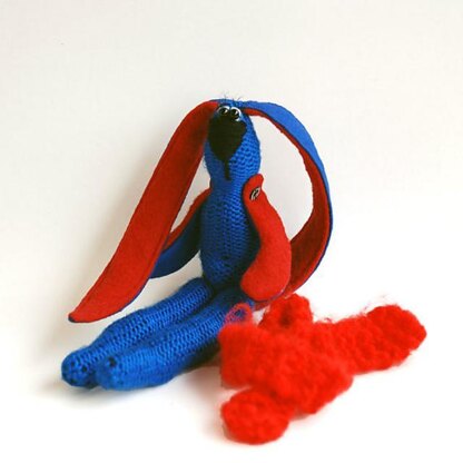 Hare made in mixed technique. Head, body and feet are hand knitted, Arms and ears are made of fabric. The Hare toy is knitted round and that is why the pattern is recommended for Advanced Beginner Knitters. Toy related purl stitch The finished hare is approximately 23cm tall. This 5 page pattern containes knitting pattern, sewing pattern, pictures + unlimited email help from me in case you get stumped.