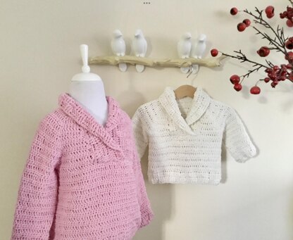Harmony Basketweave Shawl Collar Sweater is a stylish, modern sweater for both girls and boys. It will keep your baby extra cozy or make perfect gift. Beginner friendly sweater can be made with cotton blend yarn for spring or wool yarn for colder seasons.