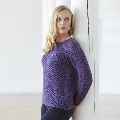 Tahki Yarns Harper jumper has a fabulous texture with ribbing and double moss stitch. This women’s raglan jumper is knit in pieces from the bottom up and then seamed. Tahki Yarns Classic Superwash is a workhorse yarn in a DK weight, and it's machine-washable making it perfect for all kinds of projects for children and adults. Note: Stitch patterns are written only.