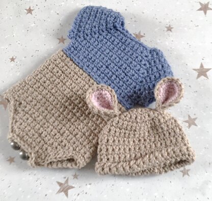 Directions for the hat and nappy/diaper cover are included in 5 different sizes.