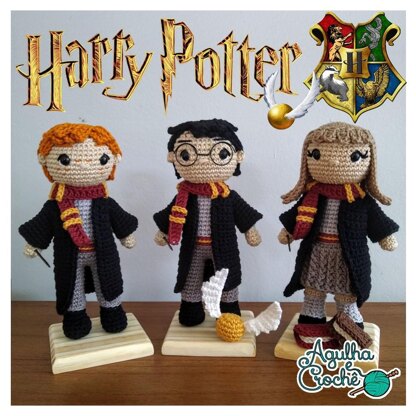 ABOUT THIS BUNDLEThis bundle contais the patterns to crochet Harry, Ron and Hermione from Harry Potter series, glasses, books and Golden Snitch included. All characters are about 20 cm tall. However, the final size depends on the yarn, hook and personal tension. These are amigurumi patterns to create the doll shown in the images. There are clear written and image instructions to guide you through the process. This bundle does not teach how to crochet. Intermediate knowledge in amigurumi technique is needed. Yarn types and colors used in this pattern are just suggestions. Feel free to use whatever color you like! Thank you for your support! I hope you enjoy these patterns!