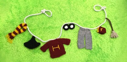 This pattern is so cute and festive. The garland measures 1 m long. This lovely novelty pattern consists of a scarf, a hat, a jumper, glasses, trousers, book and broom. This festive style decoration looks gorgeous hung up or draped across a window or fireplace.