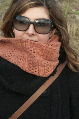 The cowl is worked in rows, the ends are then joined as you go. It is easy to crochet and can be done in any yarn that you like. I wouldn’t suggest a bulky one though.