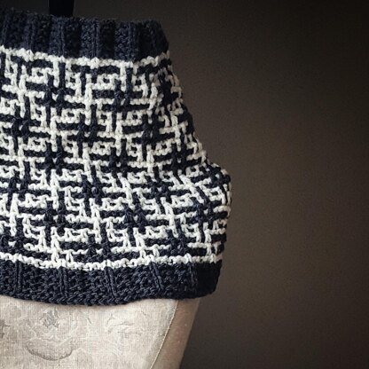 Be bold and indulge yourself with some fun and fast mosaic knitting. This super cute, graphic cowl is knit in the round, with two high contrasting colors of Aran weight wool, making for a quick knit. Hashtag Cowl will keep you warm & snuggly this winter season ... and is just perfect for gift knitting too!