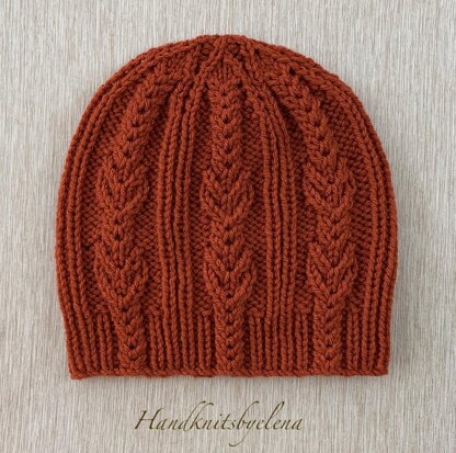 The beautiful cables on this hat are created with twisted stitches. They are very easy to knit and look very pretty.