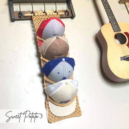 Are you looking for a great crochet gift idea that is unique AND useful? This is just that. The crochet hat display is a fun and easy way to store your most beloved hats. Simply slide the bill of the hat behind a strap and it safe from being stepped on or crunched.