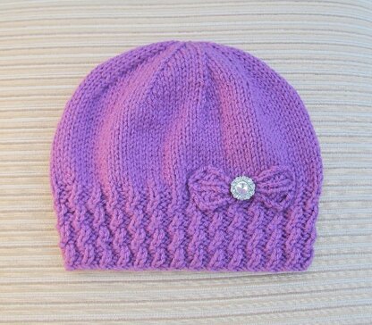 This hat is made in the round and does not have a seam. The little bow is knitted separately and attached to the hat by hand.