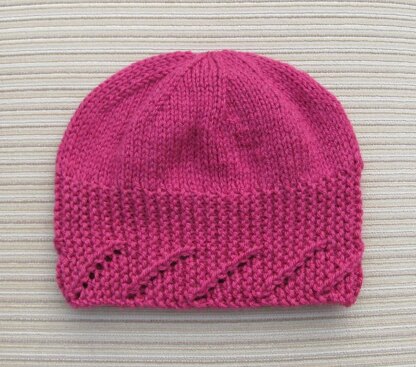 The border of this pretty hat is made sideways, then stitches are picked up and the top is made in the round.