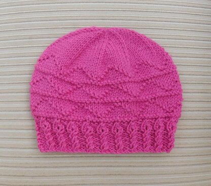 The border of this pretty hat is made using a simple twisted stitches technique.