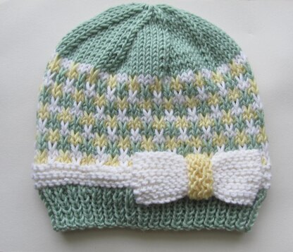 Hat with Slip Stitch and a White Bow for a Girl 18 months-2 Years