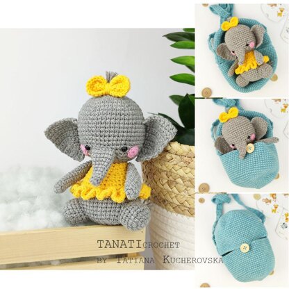 Material: • yarn YarnArt Jeans or ALIZE cotton gold (55% cotton / 45% acrylic) • hook 2.0 mm • soft stuffing • scissors • 2 black safety eyes 6 mm • 1 button for the bag • pins for sewing the parts at the right spot • needle for sewing