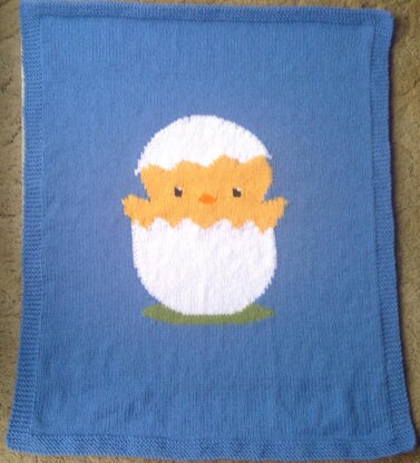 Cute aran blanket showing hatching chick. A nice pattern to work if you want to try out your intarsia skills! 61 x 76.5 cm/ 24 x 30”.