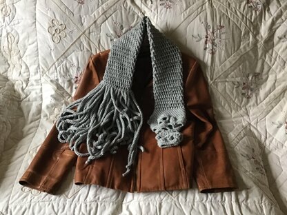 Beyond texture! Tons of cords with style and flair. Looks great over your coat or favorite sweater. Completely reversible. Simple crochet stitches throughout.
