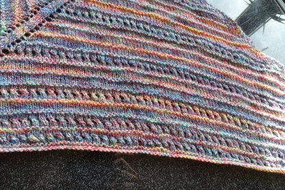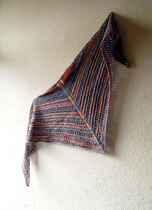 Sit down and relax, here comes the no effort shawl. Designed for 1 ball of sock yarn, this triangular shawl won't do you harm. It is worked top down, starting with a garter tab and increasing in every second row. The pattern gains interest through texture and eyelets, both of which are easy to do. Have a seat please.