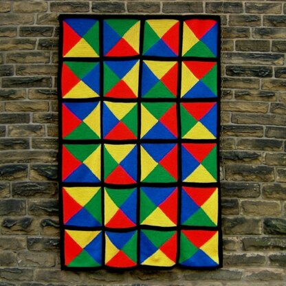 It is suitable for beginners and experienced knitters and is a very portable project as it is knitted in squares which are joined later. You do not have to work to a particular gauge. The original was made in Aran weight yarn but you can use any yarn of your choice.