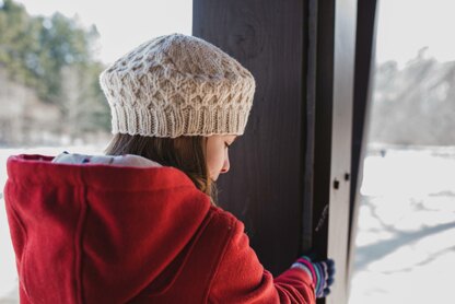 The Hawkins tam features a combination of rib, stockinette, and slipped stitch patterns. Use a chunky or heavy worsted weight yarn like Knit Picks’ Simply Wool to make those textured stitches pop and whip up in no time at all.