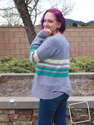 Do you want something that’s a bit funner than a simple cardigan? Something that will add a splash of personality to jeans and a tshirt on a chilly Spring night? Because the Haylee Cardi might be perfect for you! This design is suprisinly easy to make and features both a nice decorative twist in the back and striping to take it from “oh, I’ve seen that before” to “oh, I need 3, in different colors.”
