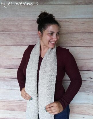 The Haylee Scarf was designed for my Let’s Crochet Some Scarves, Vol 1 eBook.Materials You'll Need:137 (260, 388, 567) Yards of Worsted Weight Yarn (I used Wool Ease in Natural Heather), H8/5mm Crochet Hook, Tapestry Needle for Weaving in EndsYarn Alternatives: Lion Brand’s Vanna’s Choice or Heartland, Hobby Lobby’s I Love This Yarn, Red Heart’s Soft, Bernat’s Super Value and Premier Yarns Everyday Soft.Time Spent: This adult small size took me 4.5 hours.Sizes Included: Toddler, Child, Teen/Adult Small and Adult LargeGauge - Not Essential: 16 HDC x 11 Rows = 4" x 3.75”Abbreviations: HDC - Half Double Crochet