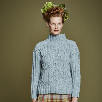 HAZEL is a great cable funnel neck sweater using Rowan Felted Tweed Aran.