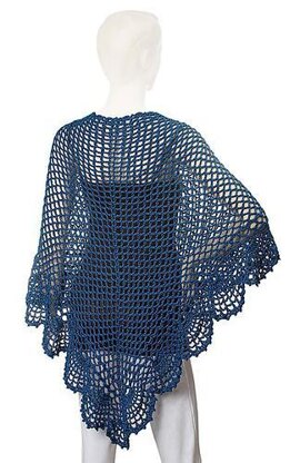 This lovely design is the perfect project for anyone looking for an easy-to-crochet batwing shawl for any season or occasion. Curved top edge shaping fits beautifully around shoulders and is worked from the neck down, growing longer and wider with each row. The simple lace repeat on the upper portion is made with only single crochet and chain stitches, and can be made in your desired length before adding the border pattern